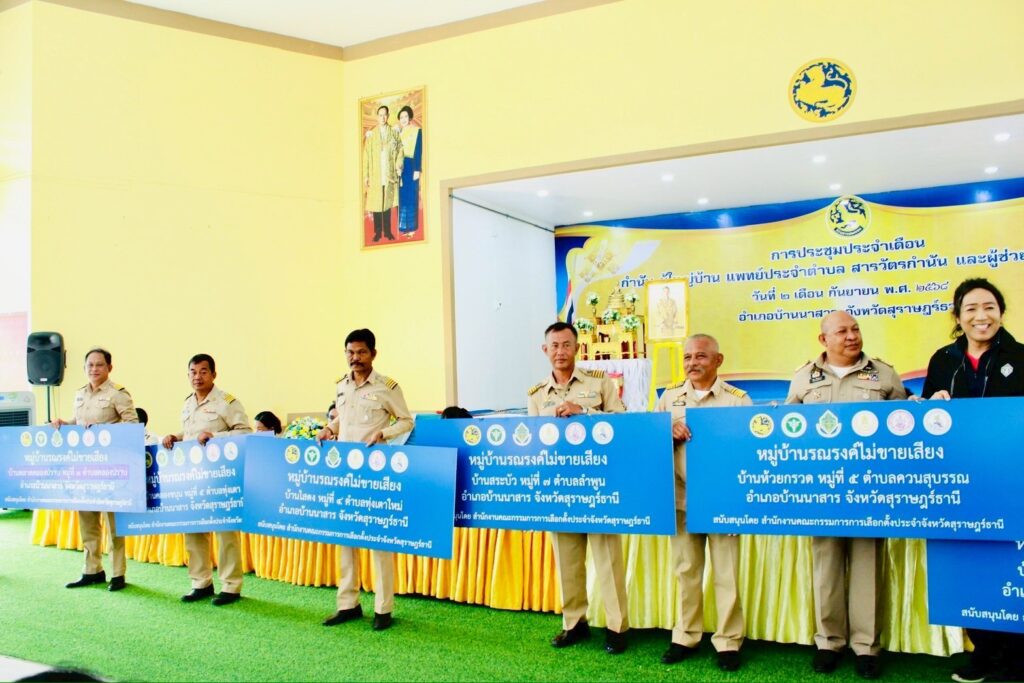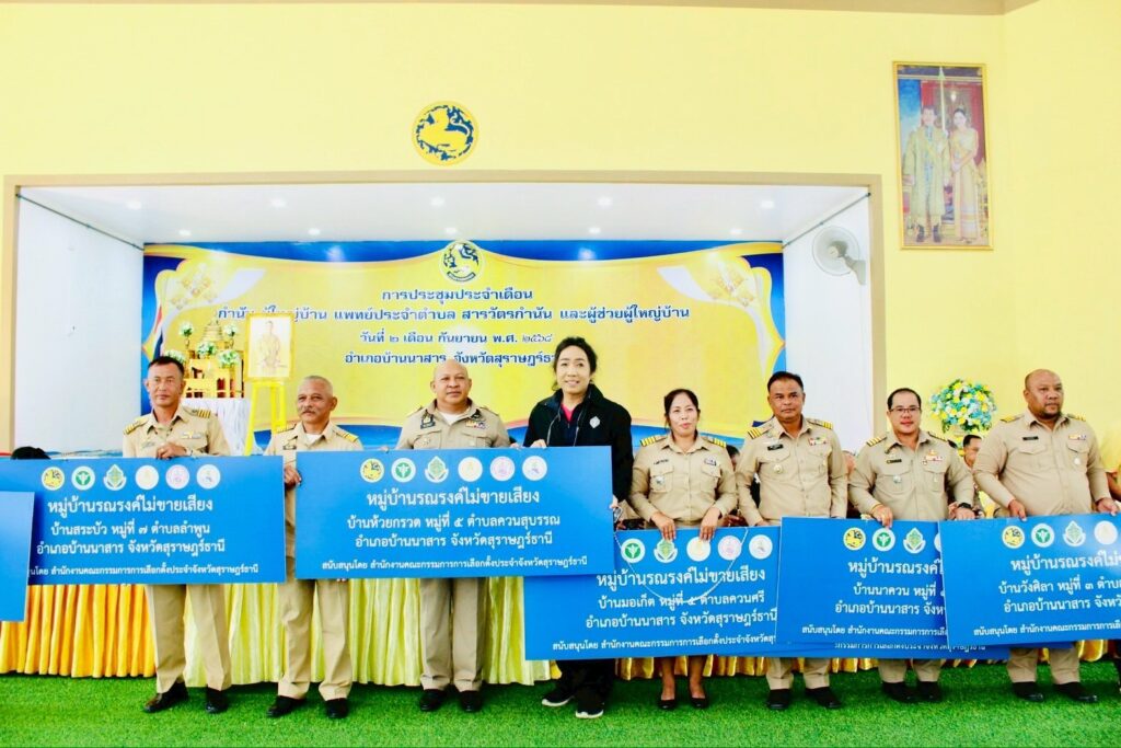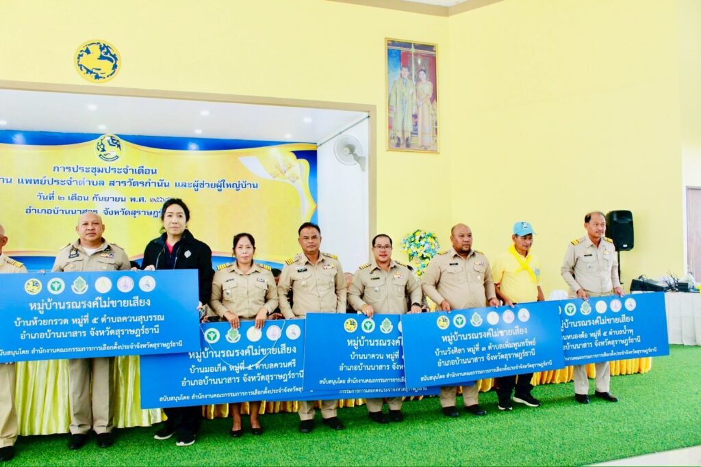 6. การมอบป้ายกิจกรรมรณรงค์หมู่บ้านไม่ขายเสียงให้กับตัวแทนหมู่บ้าน/ชุมชน จำนวน 11 แห่ง