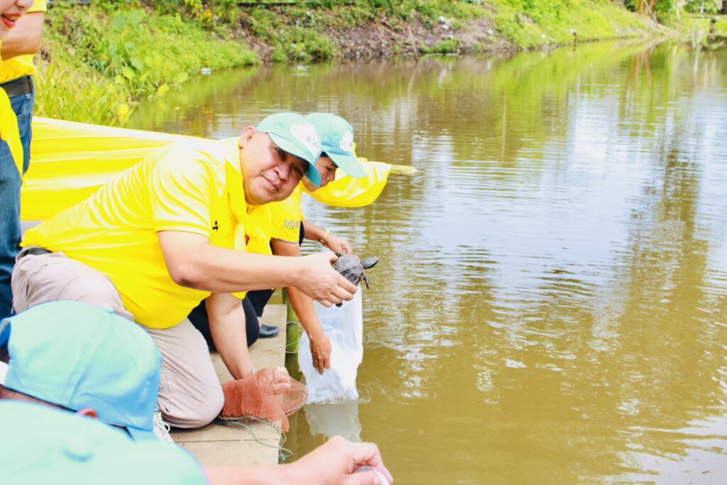 ๒. ประเภทกิจกรรม : กิจกรรมจิตอาสาปล่อยพันธุ์สัตว์น้ำ และพัฒนาแม่น้ำ คู คลอง เนื่องในวันนวมินทรมหาราช ณ ห้วยทรายขาว หมู่ที่ ๑ ตำบลทุ่งเตา อำเภอบ้านนาสาร จังหวัดสุราษฎร์ธานี