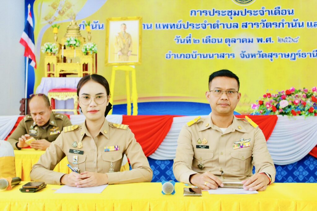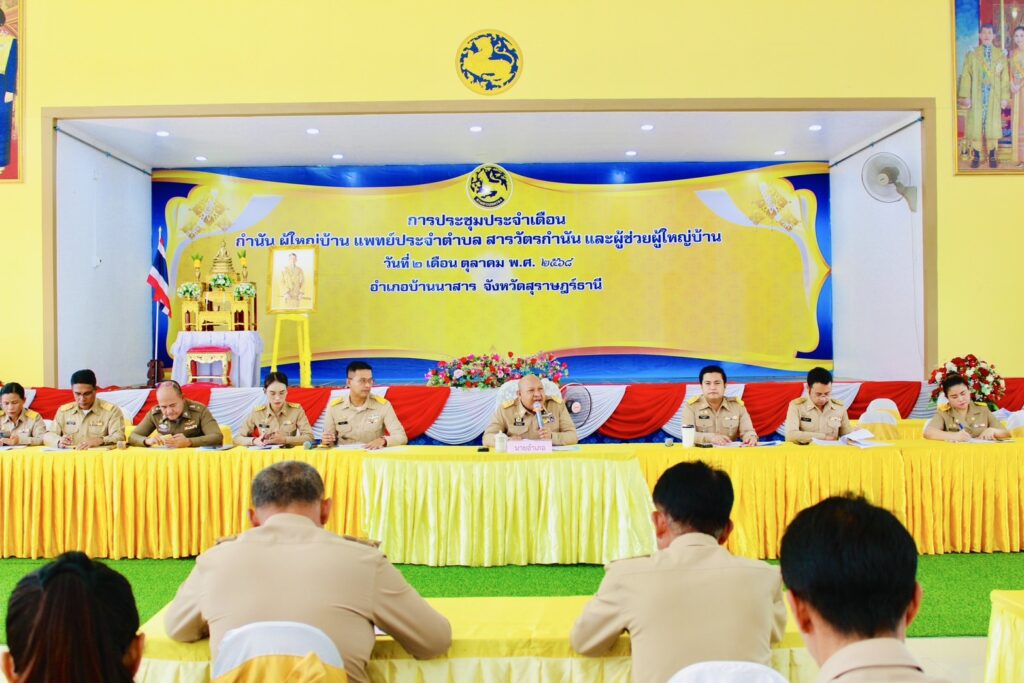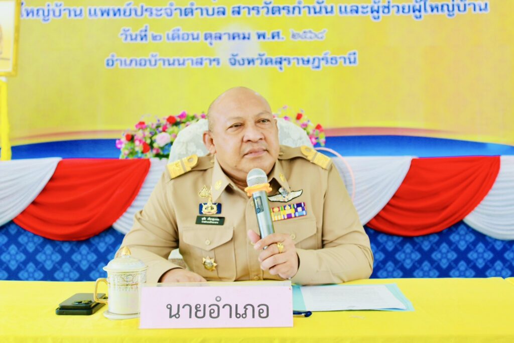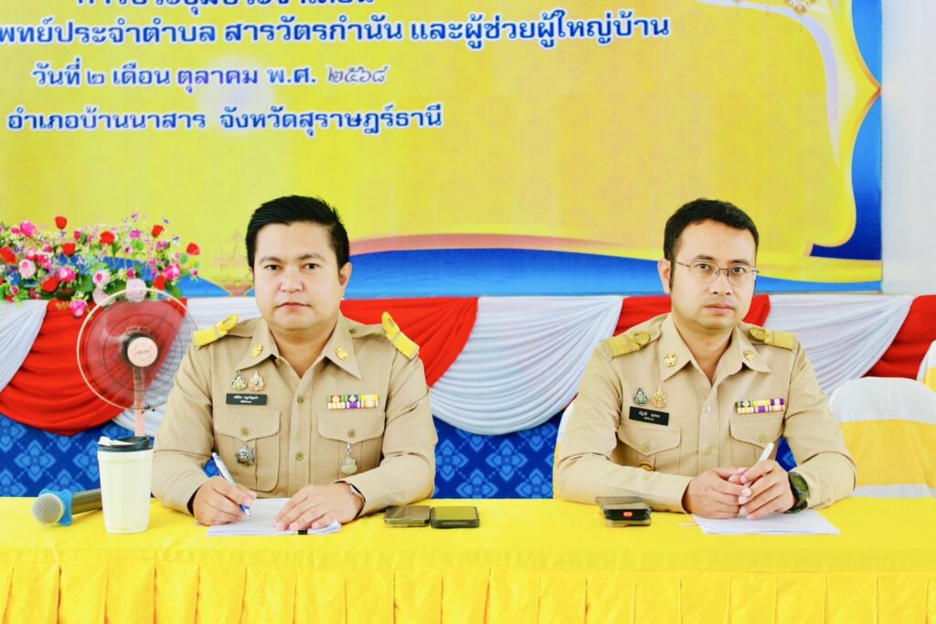 วันที่ 2 ตุลาคม 2568 เวลา 08.30 – 11.00 น. นายอุทัย เทือกสุบรรณ นายอำเภอบ้านนาสาร เป็นประธานการประชุมกำนัน ผู้ใหญ่บ้าน ฯลฯ ประจำเดือนตุลาคม 2568 โดยมีหัวหน้าส่วนราชการประจำอำเภอ หัวหน้าหน่วยงานรัฐวิสาหกิจ ปลัดอำเภอ และผู้บริหารองค์กรปกครองส่วนท้องถิ่น เข้าร่วมประชุม ณ ศาลาประชาคมอำเภอบ้านนาสาร ซึ่งมีระเบียบวาระที่สำคัญ ดังนี้