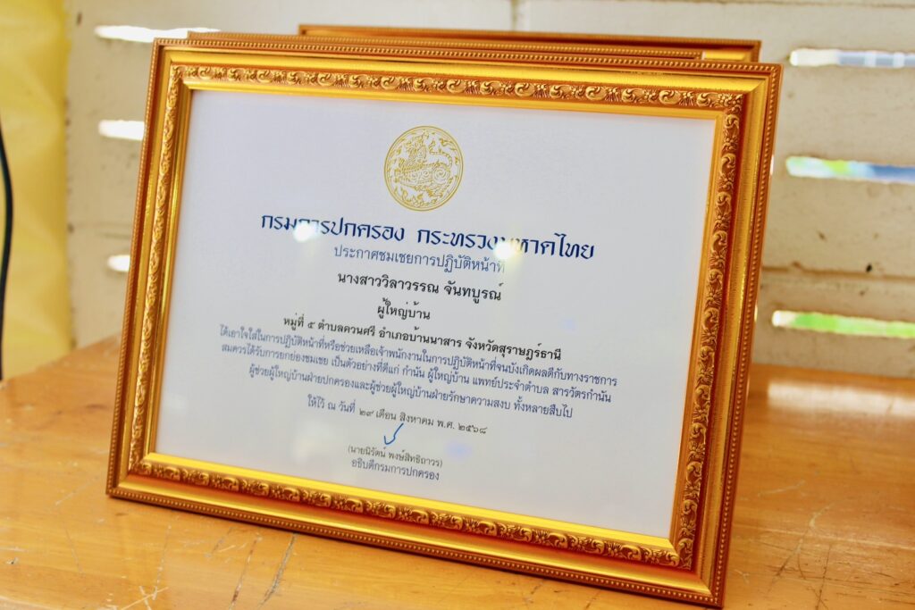 2. การมอบประกาศกรมการปกครองชมเชยการปฏิบัติหน้าที่ของกำนัน ผู้ใหญ่บ้าน ฯลฯ ให้แก่ผู้ใหญ่บ้านและผู้ช่วยผู้ใหญ่บ้าน หมู่ที่ 5 ตำบลควนศรี จำนวน 3 ราย ที่ได้ปฏิบัติหน้าที่จนบังเกิดผลดีกับทางราชการ สมควรได้รับการยกย่องชมเชย