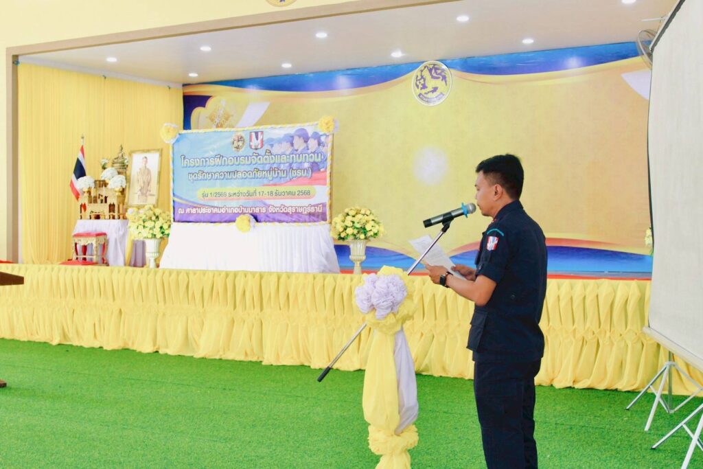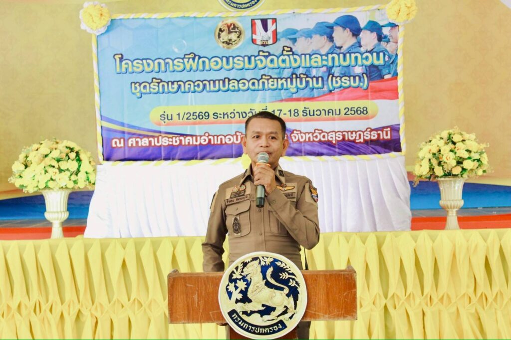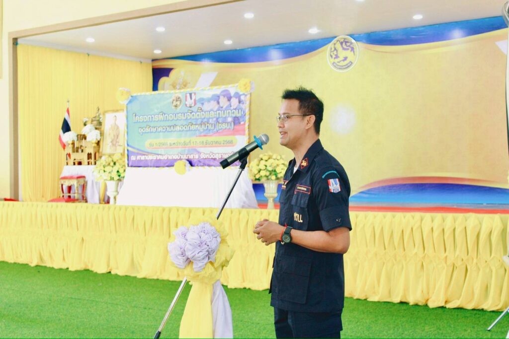 นายอุทัย เทือกสุบรรณ นายอำเภอบ้านนาสาร เป็นประธานในพิธีเปิดโครงการฝึกอบรมจัดตั้งและทบทวนชุดรักษาความปลอดภัยหมู่บ้านรุ่นที่ ๑ ประจำปีงบประมาณ พ.ศ.๒๕๖๙ โดยมีนายสนิท ชูเพชร์ ปลัดอำเภอหัวหน้ากลุ่มงานบริหารงานปกครอง เป็นผู้กล่าวรายงาน