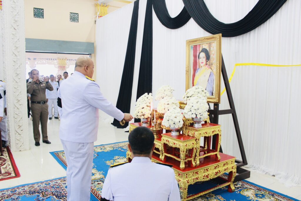 🩵 นายอุทัย เทือกสุบรรณ นายอำเภอบ้านนาสาร ประธานในพิธีบำเพ็ญกุศลในวาระครบ ๑๐๐ วัน (สตมวาร) เพื่อถวายเป็นพระราชกุศลแด่สมเด็จพระนางเจ้าสิริกิติ์ พระบรมราชินีนาถ พระบรมราชชนนีพันปีหลวง อำเภอบ้านนาสารจึงได้ดำเนินการจัดกิจกรรมประกอบพิธีสวดพระพุทธมนต์ เวลา ๐๘.๓๐ น. ณ วัดนาสาร ตำบลนาสาร อำเภอบ้านนาสาร จังหวัดสุราษฎร์ธานี